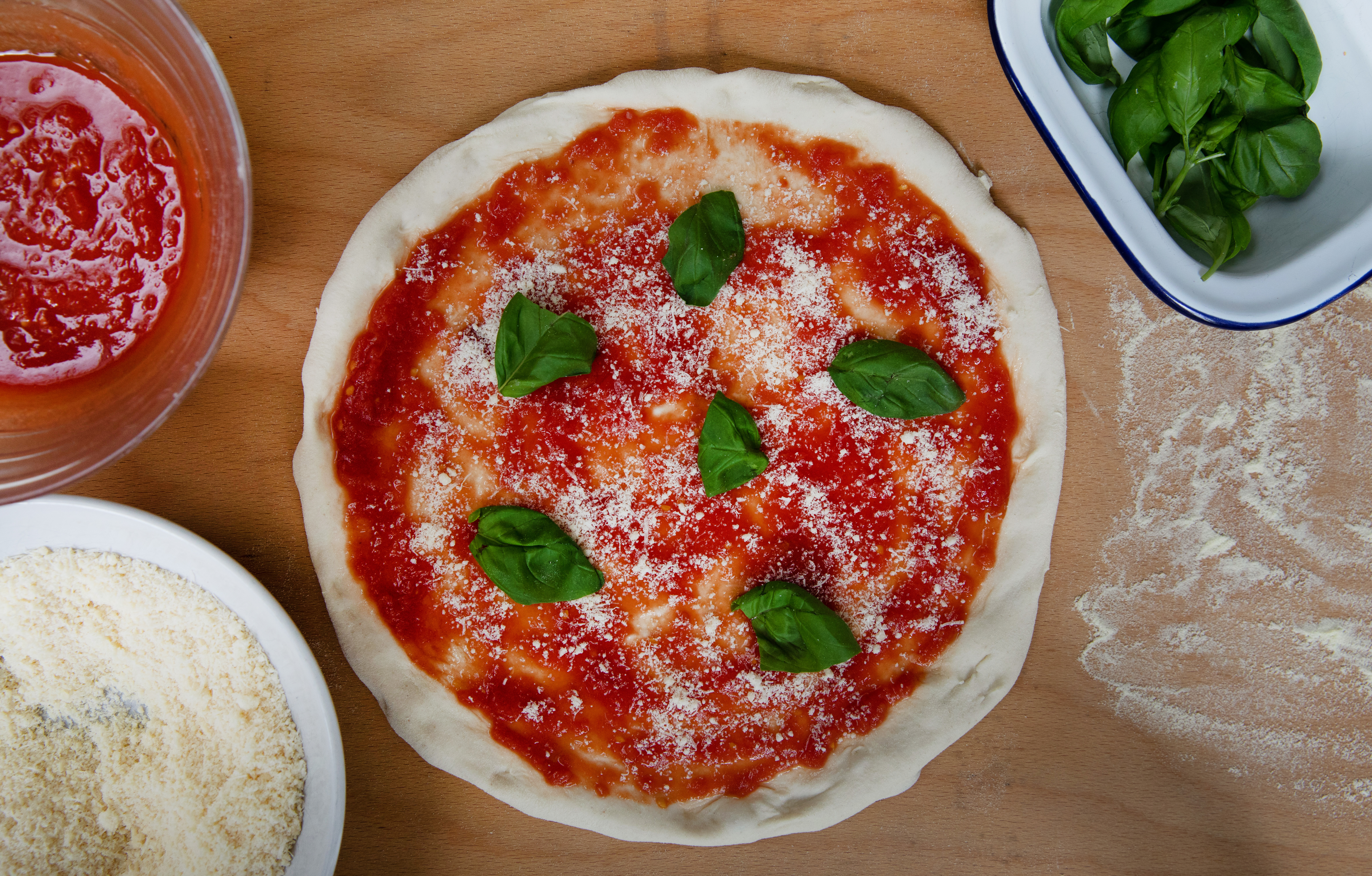 Remove from packaging, top as normal with sauce and cheese.